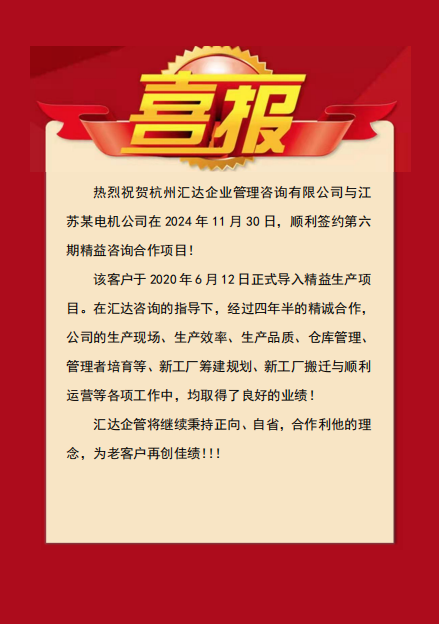 【喜報】祝賀匯達企管攜手老客戶續約第6期精益項目合作